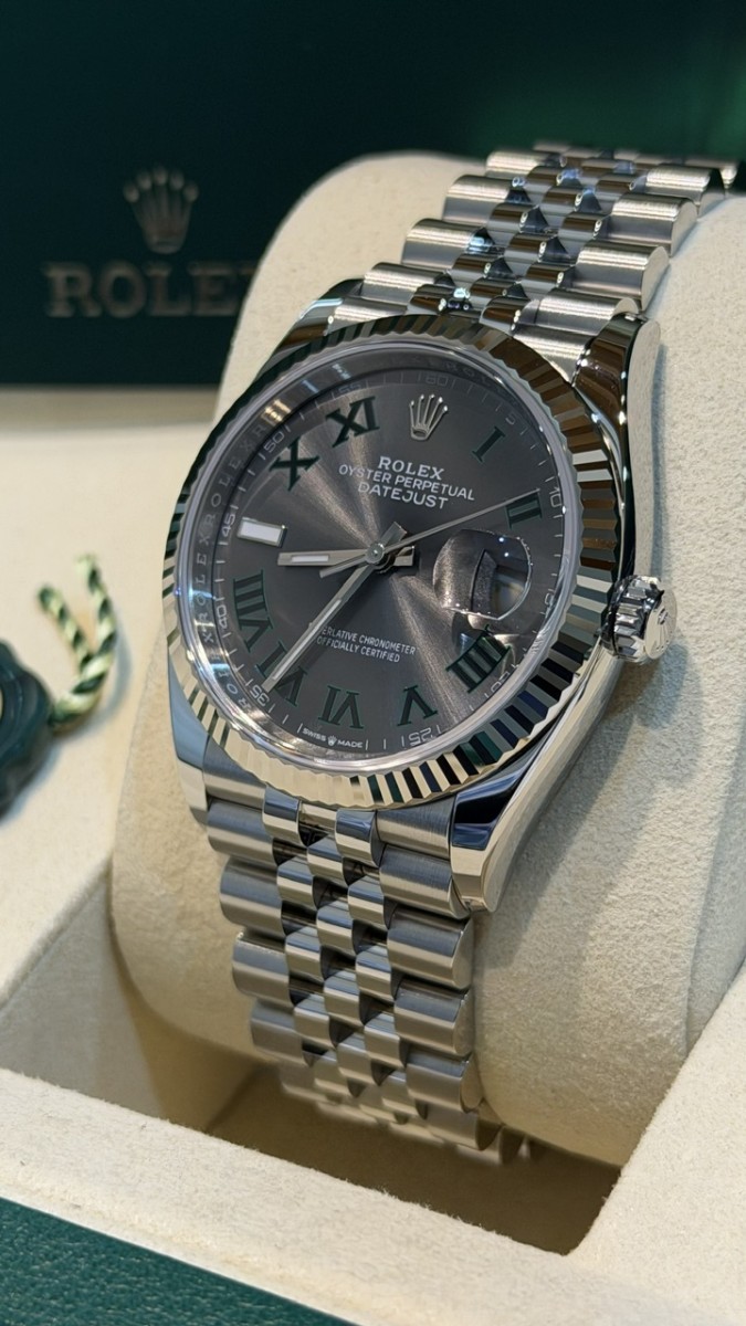 Negozio Rc Orologi S.R.L. , situato in Via A. Poerio 22 a Mestre (Venezia), vende Rolex Datejust 126234 36mm. Nuovissimo Aprile 2026. Garanzia 5 anni Rolex. Completo full set freschissimo mai indossato. Ghiera oro bianco. Bracciale jubilee. Quadrante Wimbledon. Spettacolare. Valuto permute con controllo in negozio, principalmente con Rolex recenti, nuovi o revisionati negli ultimi 24 mesi con documentazione scritta, completi full set, solo in eccellenti condizioni. Contatto diretto Whatsapp 3314187649. Pagamento solo bonifico bancario, bancomat, carta di credito, American Express ( anche a distanza tramite apposito link “ pay by link” ) o contanti nei limiti di legge ( NO “tutto contanti”, NO rate, NO finanziamenti, NO dilazioni, NO Tax Free ).