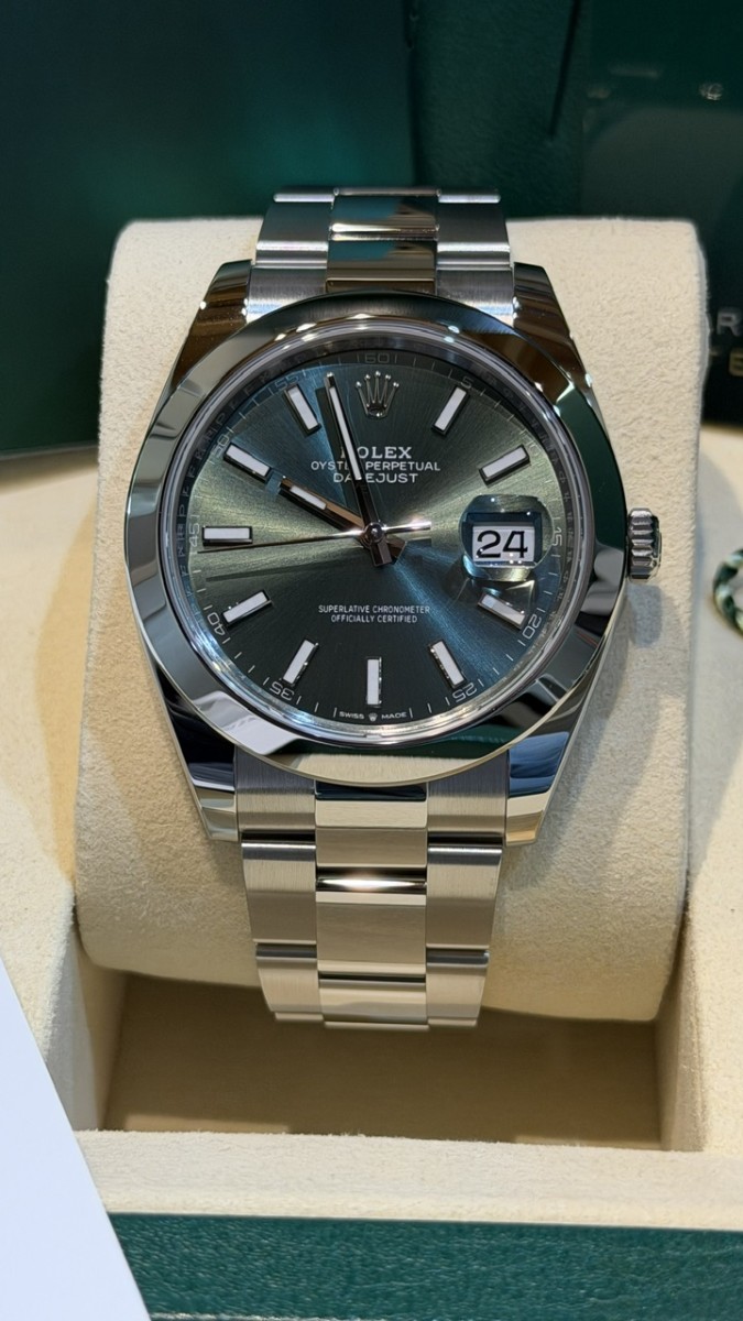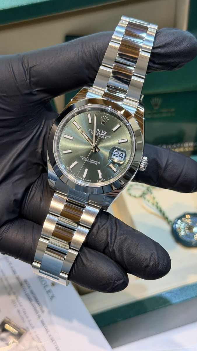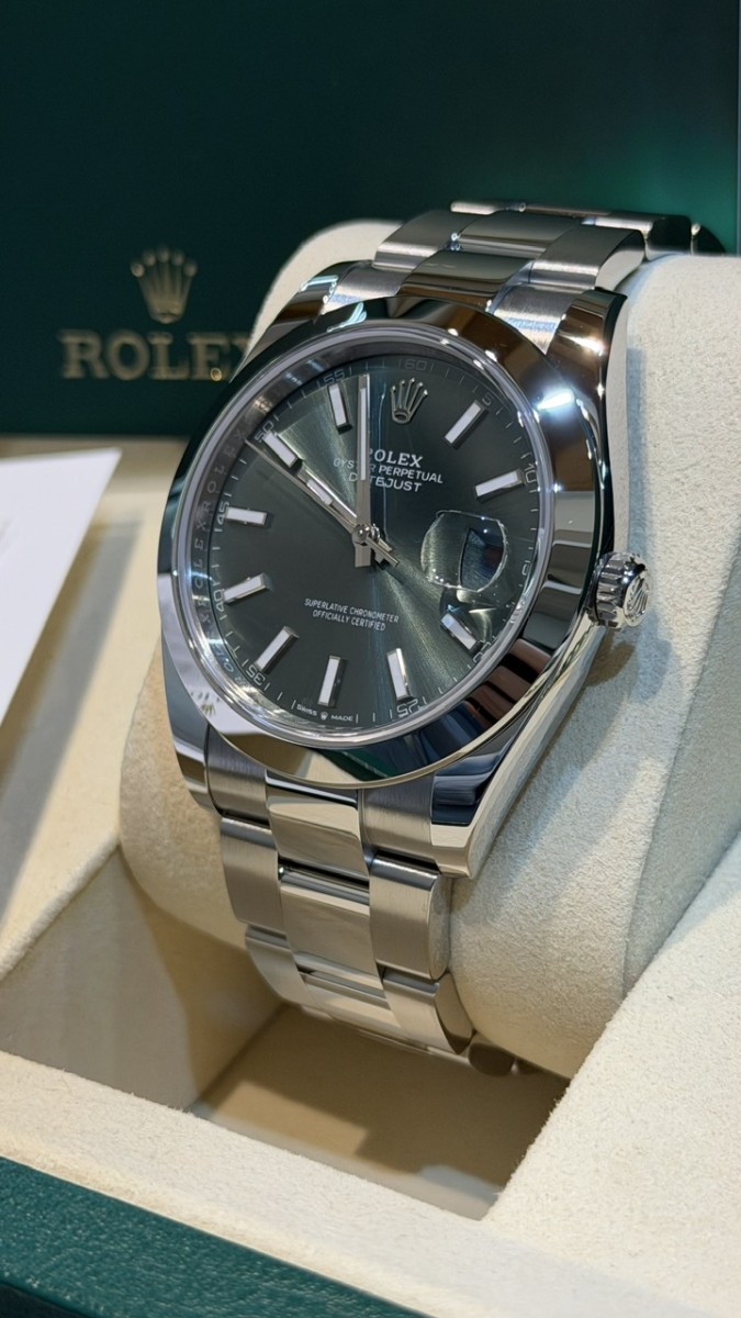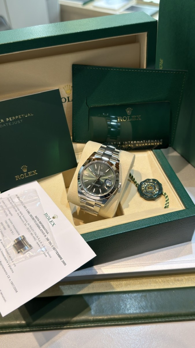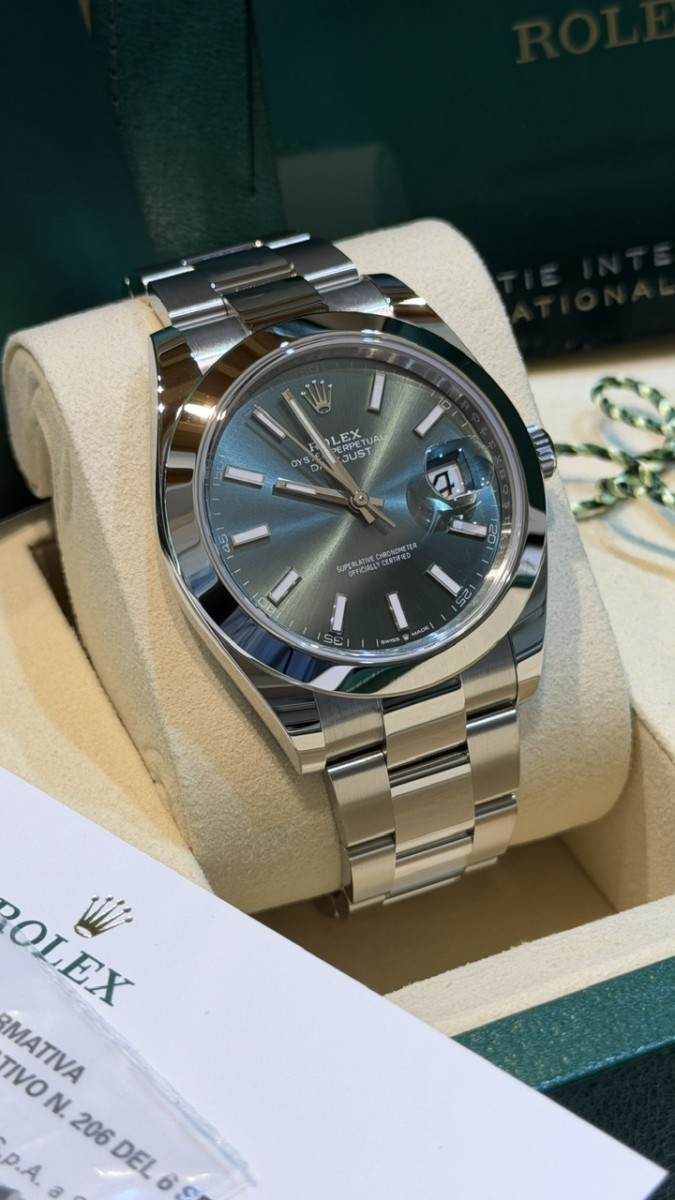 Negozio Rc Orologi S.R.L. , situato in Via A. Poerio 22 a Mestre (Venezia), vende Rolex Datejust ref. 126300 acciaio. Misura 41mm. Nuovissimo Aprile 2026. Quadrante verde. Bracciale oyster. Mai indossato. Completo full set. 5 anni garanzia Rolex. Pronta consegna. Valuto permute con controllo in negozio, principalmente con Rolex recenti, nuovi o revisionati negli ultimi 24 mesi con documentazione scritta, completi full set, solo in eccellenti condizioni. Contatto diretto Whatsapp 3314187649. Pagamento solo bonifico bancario, bancomat, carta di credito, American Express ( anche a distanza tramite apposito link “ pay by link” ) o contanti nei limiti di legge ( NO “tutto contanti”, NO rate, NO finanziamenti, NO dilazioni, NO Tax Free ).