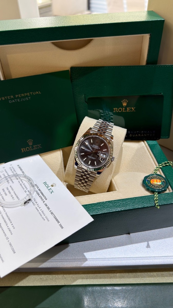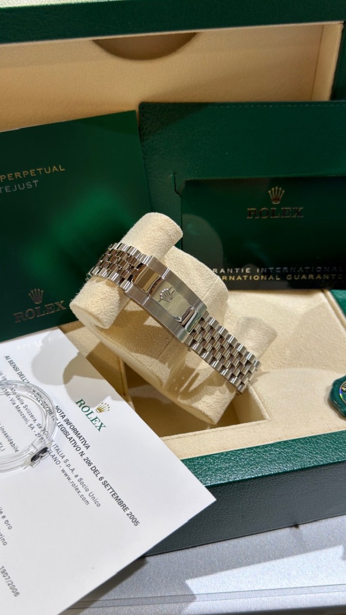 Negozio Rc Orologi S.R.L. , situato in Via A. Poerio 22 a Mestre (Venezia), vende Rolex Datejust 126334 41mm bracciale jubilee. Anno 2023. Quadrante Rhodium. Ghiera zigrinata oro bianco. Condizioni eccelse. Pari nuovo. Completissimo full set. Stupendo. Pronta consegna. Valuto permute con controllo in negozio, principalmente con Rolex recenti, nuovi o revisionati negli ultimi 24 mesi con documentazione scritta, completi full set, solo in eccellenti condizioni. Contatto diretto Whatsapp 3314187649. Pagamento solo bonifico bancario, bancomat, carta di credito, American Express ( anche a distanza tramite apposito link “ pay by link” ) o contanti nei limiti di legge ( NO “tutto contanti”, NO rate, NO finanziamenti, NO dilazioni, NO Tax Free ).