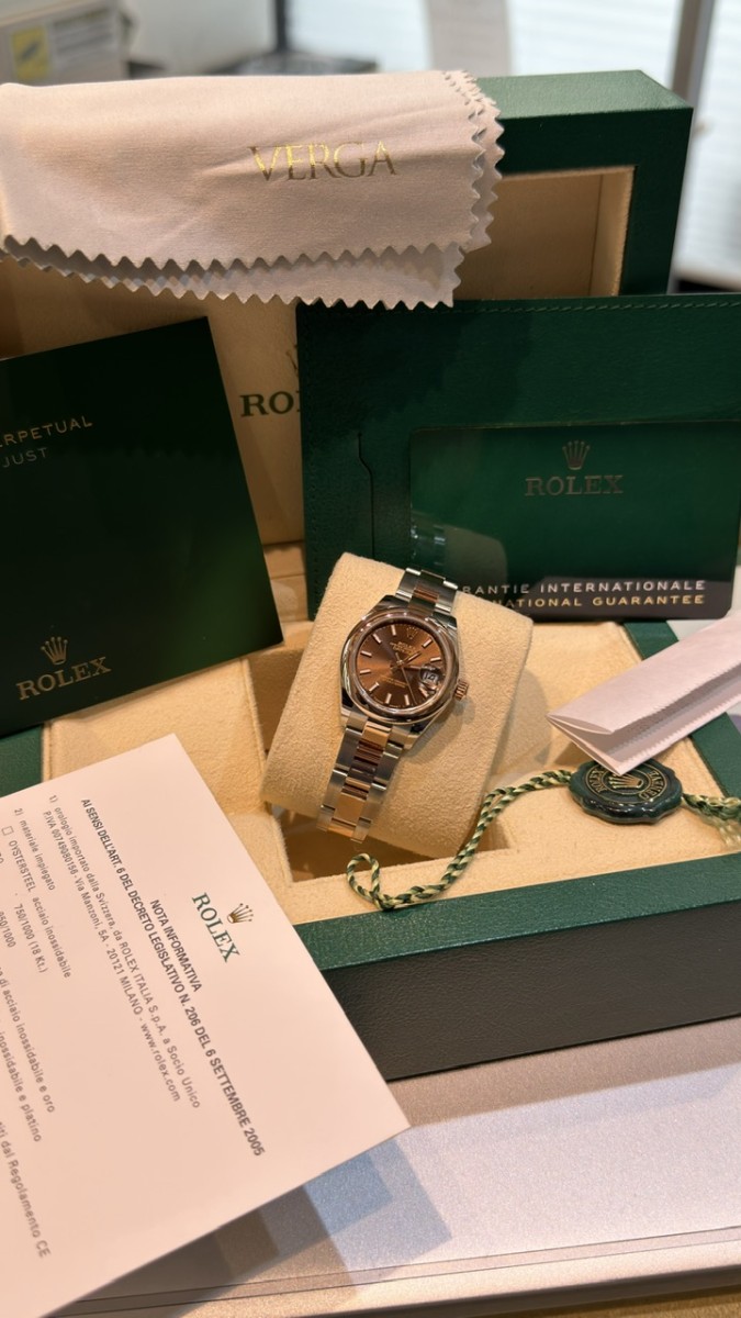 Negozio Rc Orologi S.R.L. , situato in Via A. Poerio 22 a Mestre (Venezia), vende Rolex Datejust acciaio oro rosa. Bracciale oyster. Referenza 279161. Anno 2022. Come nuovo. Completo full set. Manca solo la contro scatola. Misura 28mm. Quadrante chocolate. Orologio pazzesco. Disponibile. Valuto permute con controllo in negozio, principalmente con Rolex recenti, nuovi o revisionati negli ultimi 24 mesi con documentazione scritta, completi full set, solo in eccellenti condizioni. Contatto diretto Whatsapp 3314187649. Pagamento solo bonifico bancario, bancomat, carta di credito, American Express ( anche a distanza tramite apposito link “ pay by link” ) o contanti nei limiti di legge ( NO “tutto contanti”, NO rate, NO finanziamenti, NO dilazioni, NO Tax Free ).