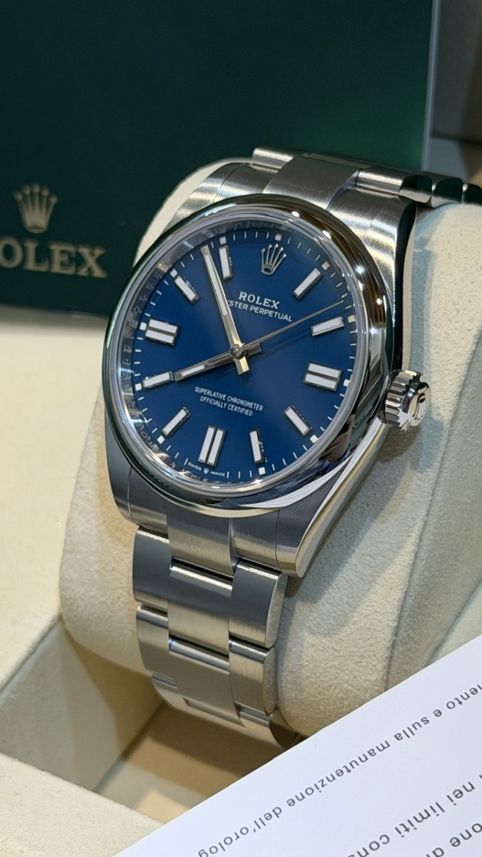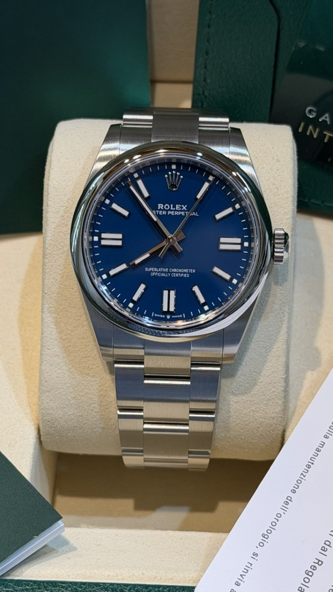 Negozio Rc Orologi S.R.L. , situato in Via A. Poerio 22 a Mestre (Venezia), vende Rolex Oyster Perpetual 134300. 41mm. Nuova referenza. Acciaio. Quadrante Blu Med. Nuovo mai indossato. Anno 2025. Completo full set. 5 anni Rolex. Pronta consegna. Valuto permute con controllo in negozio, principalmente con Rolex recenti, nuovi o revisionati negli ultimi 24 mesi con documentazione scritta, completi full set, solo in eccellenti condizioni. Contatto diretto Whatsapp 3314187649. Pagamento solo bonifico bancario, bancomat, carta di credito, American Express ( anche a distanza tramite apposito link “ pay by link” ) o contanti nei limiti di legge ( NO “tutto contanti”, NO rate, NO finanziamenti, NO dilazioni, NO Tax Free ).