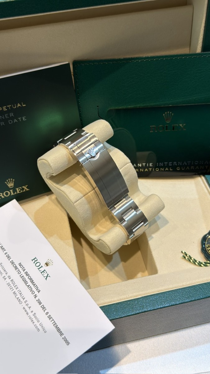 Nuovo 2026 fresco. Mai indossato completo. Full set. Garanzia 5 anni Rolex. Pronta consegna. Calibro 3235. 70 ore di riserva di carica. Stupendo. Valuto permute con controllo in negozio, principalmente con Rolex recenti, nuovi o revisionati negli ultimi 24 mesi con documentazione scritta, completi full set, solo in eccellenti condizioni. Contatto diretto Whatsapp 3314187649.