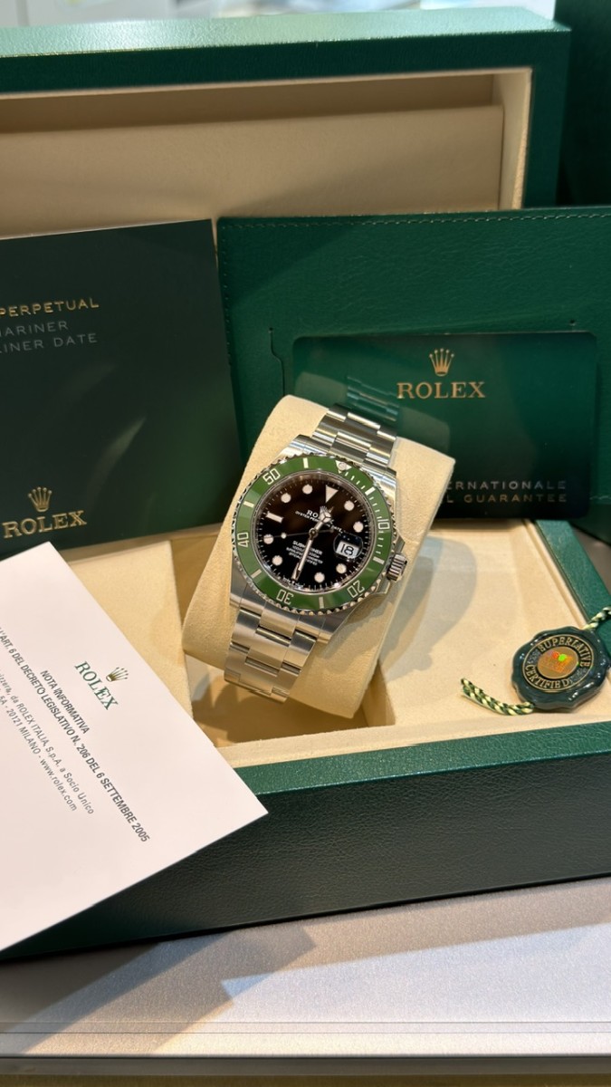 Negozio Rc Orologi S.R.L. , situato in Via A. Poerio 22 a Mestre (Venezia), vende Rolex Submariner Data 126610LV acciaio. Ghiera verde. 41mm. ” Starbucks”.